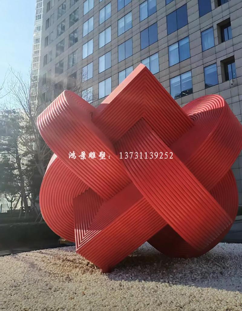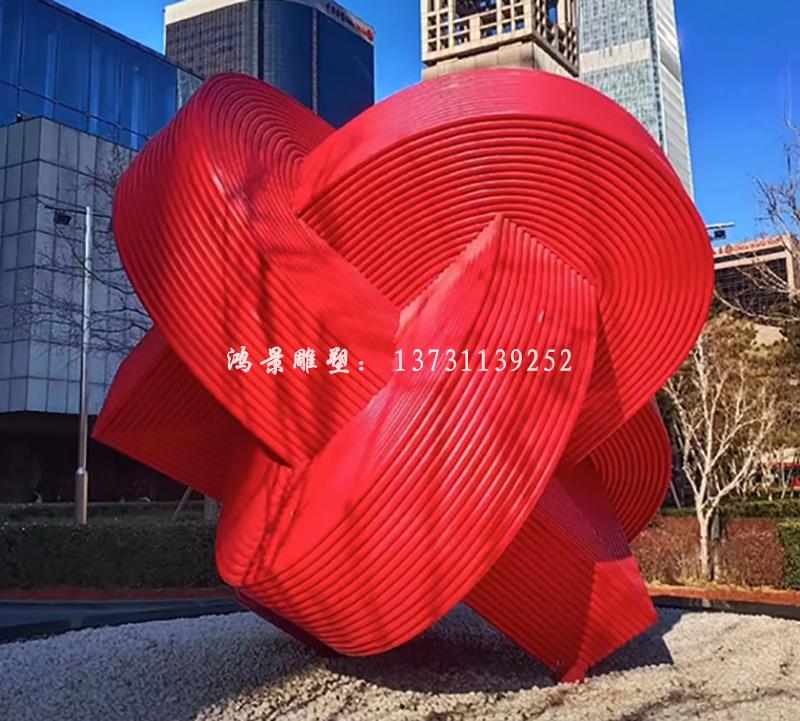 不銹鋼紅色中國結雕塑,小區團結標志實物