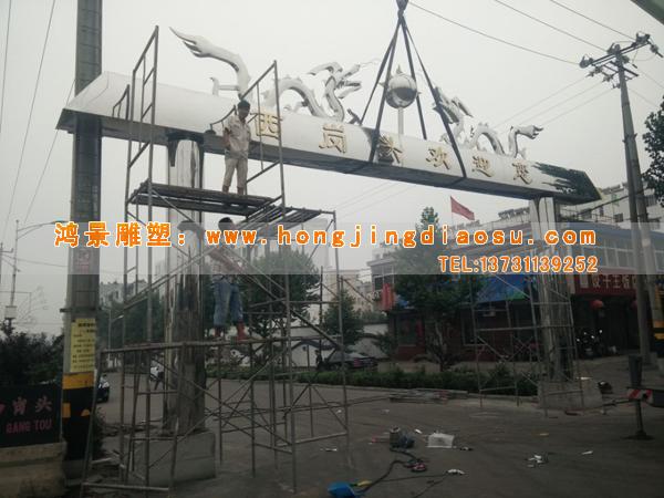 城市不銹鋼雕塑工程案例 標志性村口雕塑