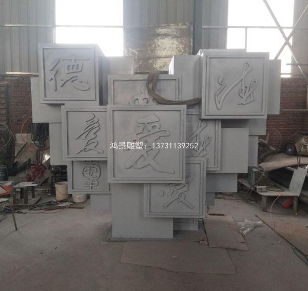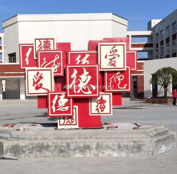 雕塑名稱:校園積石雕塑3米高,不銹鋼景觀石頭雕塑,“愛”“德”雕塑加工安裝