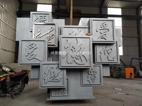不銹鋼景觀石頭雕塑是為河南省信陽市淮濱縣臺頭鄉(xiāng)中心小學(xué)訂做,該款雕塑高度為3米,是一款仿照石頭樣式來做的不銹鋼雕塑,稱之為不銹鋼景觀石頭雕塑,校園文化積石雕塑,以“愛”“德”二字為主題,體現(xiàn)了校園的奉獻精神,更是關(guān)懷、愛護人的思想感情,不違背自然規(guī)律發(fā)展去發(fā)展社會,提升自己。德即是對道,對自然規(guī)律的認(rèn)識和理解、踐行、革命,是人文精神的一種傳播。石家莊鴻景不銹鋼雕塑廠家主要訂做校園積石雕塑3米高,不銹鋼景觀石頭雕塑,“愛”“德”雕塑加工安裝等。