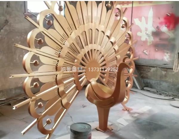 雕塑名稱:孔雀開屏雕塑,不銹鋼仿銅小品,抽象雕塑