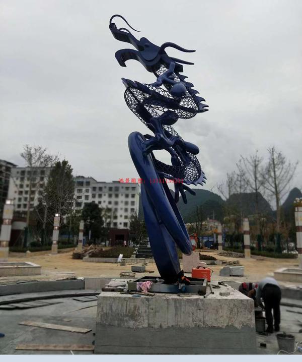不銹鋼鏤空龍雕塑,飛龍?jiān)谔斓袼?/span>