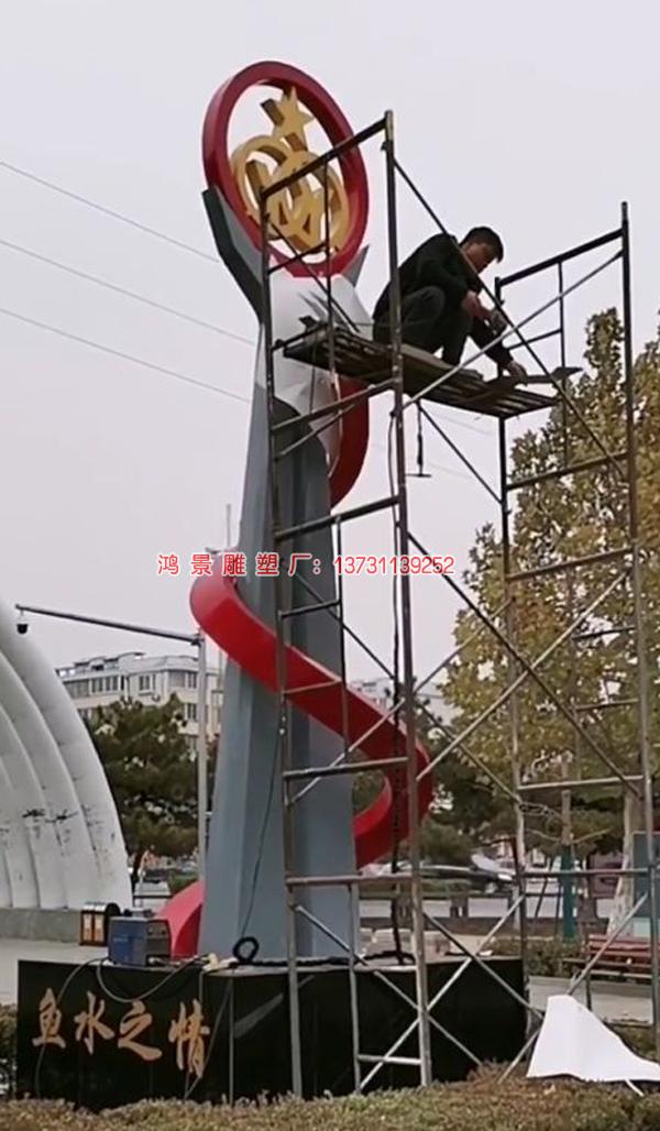 不銹鋼雙擁塑像是建設在廣場的一款雕塑,雙擁不銹鋼雕塑以雙環“Y”和五角星來作為雙擁雕塑標志,中間采用彩帶環繞雙手,凝聚在一起。雙擁指的是“雙擁工作”,是擁軍優屬擁政愛民工作的簡稱,鞏固和加強軍政軍民團結為主旨。“擁政愛民”是對于部隊而言的:意思是擁護支持各級人民政府和國家的政策、法令,愛護人民群眾。通俗的說雙擁就是軍愛民、民愛軍,軍民魚水情。