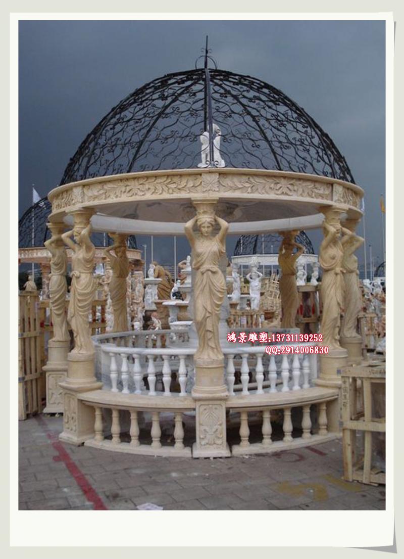 晚霞紅石雕涼亭    別墅涼亭    石雕人物涼亭