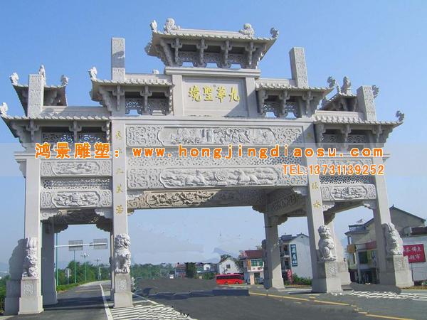 牌樓材質(zhì):漢白玉、青石、草白玉、水泥等材質(zhì)牌樓雕塑